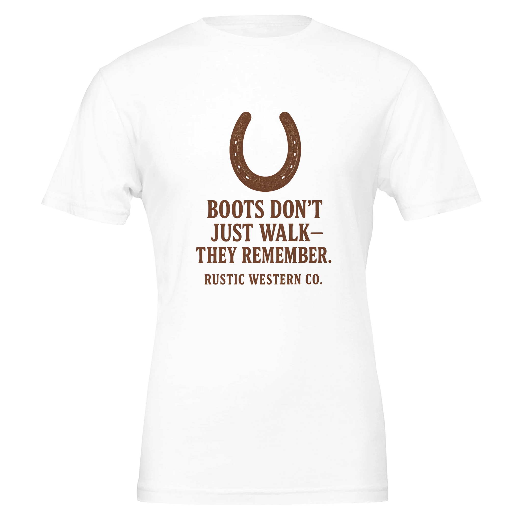 Rustic Western Co. “Boots Don’t Just Walk—They Remember” Western Graphic Tee – Premium Cowboy & Cowgirl Western Lifestyle Shirt