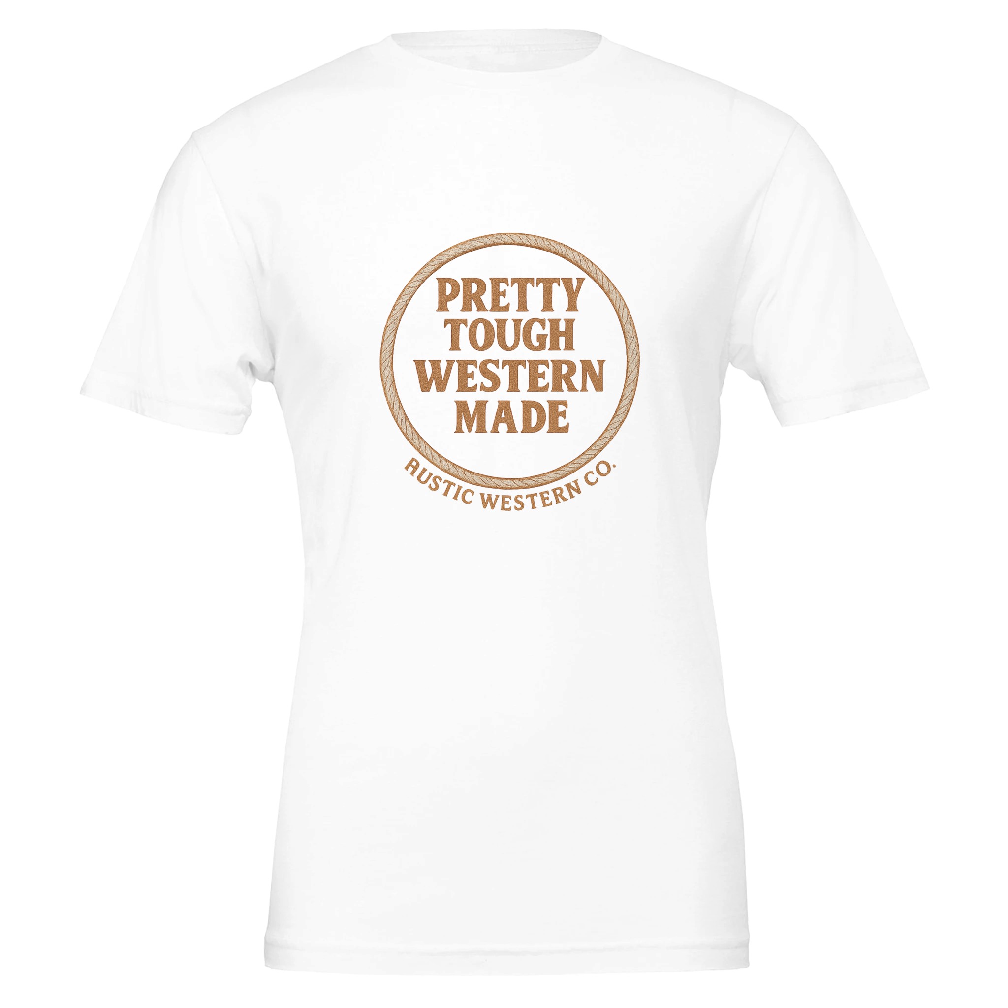 Rustic Western Co. “Pretty Tough Western Made” Graphic Tee – Women’s Cowgirl Shirt, Rope Circle Design, Country Western Apparel