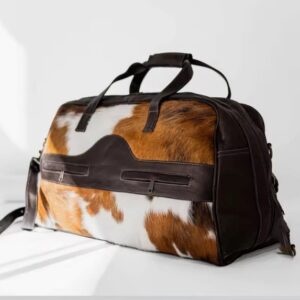 Rustic Western Co. The Silverpoint Range – Cowhide Duffle Bag Luxury Western Travel Gear | Gray & White Cowhide Weekender | Rodeo-Ready Leather Duffle